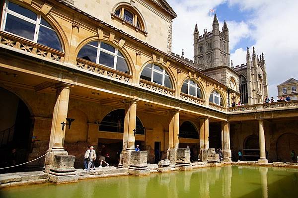 羅馬浴池是西元 65 年時由羅馬人所興建的,它們導入巴斯當地所自然冒出的溫泉來做水療池,